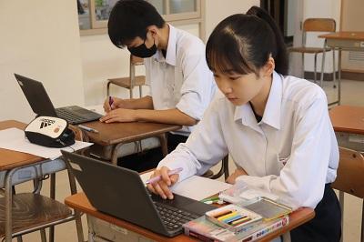 本校にて体験入学を実施しました。まずは、学校紹介にて、校長先生、生徒会長のお話があり、その後、学校紹介動画をご視聴いただきました。