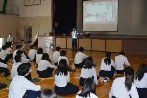 自転車については、最近特にスマートフォンやイヤホンを使用しながらの走行や並進走行などが多いことなどを話され、生徒は交通ルールやマナーを遵守することの大切さを再確認しました。