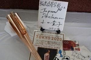 今月1日、七尾市で実施された聖火リレーのトーチで、平昌オリンピックのスケルトンに出場した輪島市出身の小口貴子さんが所有しているものです。生徒や教職員はトーチをのぞき込んだり持ち上げたりしながら、オリンピックムードを味わっていました。