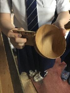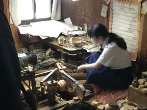 7月3日(土)「輪島塗」のおわん作りに挑戦している2年生8人が市内にある工場を訪れました。生徒たちは、木材から器を削り出す「木地作り」の作業を見学し、職人が回転する「ろくろ」に木材を取り付け、大きな「かんな」を当てて削っていく様子に興味深そうに見入っていました。