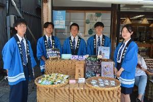 朝市での販売は毎年行っており、総合学科の先輩が企画した商品「いしる」を使ったクッキーや「うどんチップス」に加え、今年自分たちで制作したマスクケースを販売しました。生徒はかけ声を工夫しながら観光客らを呼び込み、約2時間ほどで仕入れた商品が完売しました。