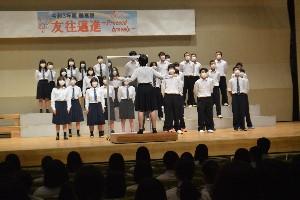 合唱コンクールでは、各クラスで生徒が選んだ曲を歌いました。コロナ感染症予防のためマスクをしての合唱となりましたが、大きな歌声を会場中に響かせていました。