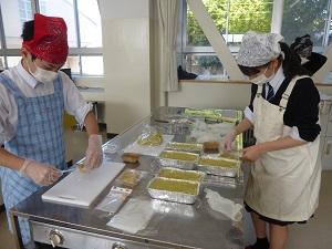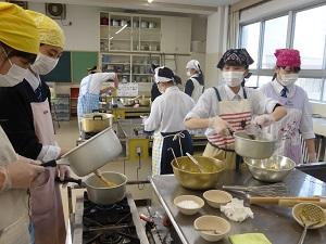 本校のJRC部が、校地内の畑で育てたさつまいもを使ってスイーツを作り、市内の高齢者施設に届けました。