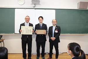 11月19日、北陸銀行輪島支店の片山支店長が来校され、本校にプロジェクター一式を寄贈されました。