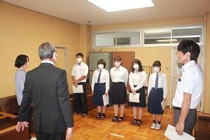 9月7日には校長室で認証式が行われ、信任を受けた5名の生徒に対し、上野校長から認証状が手渡されました。