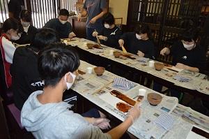 メンバーにとっては漆を使用する初めての工程でしたが、職人さんから「失敗したらやり直して、作品をどんどん良くしていこう」と教えていただき、難しい作業に取り組んでいました。