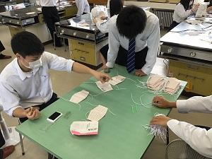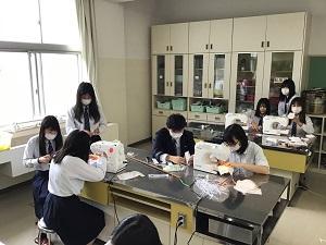 本校は長年にわたり輪島朝市での販売実習を行っていますが、輪島朝市を訪れる人が新型コロナウイルスの影響で減っていることから、「地域に元気を与えたい」との思いでマスクの作成と配布を企画したものです。