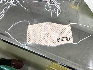 マスクには「がんばろう輪島」とスタンプが押されています。