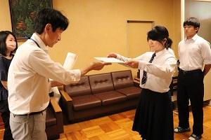 翌12日には校長室で認証式が行われ、信任を受けた5名の生徒に認証状が手渡されました。