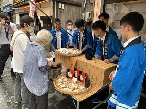 6月8日、総合学科の3年生が「がんばろう輪島」のメッセージを込めて、輪島朝市で手作りマスク100枚を配布しました。