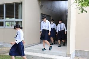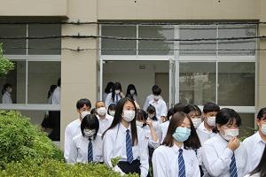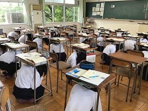 この訓練は地震発生後に火災が発生したという想定で行われ、生徒たちは非常階段等を使用し、校庭に避難していました。