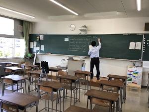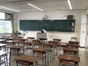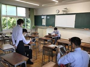 本日は3年生が登校し、マスクの着用、教室の分割、座席間の間隔の確保、換気やアルコール消毒の実施など、感染防止対策を講じた上で、久しぶりに学校での授業が行われました。