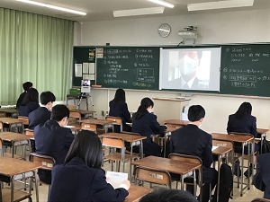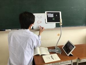 本校では臨時休業中の生徒の学習支援のため、先週からオンラインでの授業を始めました。ビデオ会議用コミュニケーションツールの「Zoom」を使用し、双方向型の授業が展開されています。