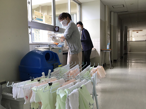 また、3年生の下校後には明日の2年生の登校に向けて、教職員による校内の消毒も行われました。