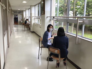 また、学習支援と並行して個人面談の時間を設け、休業期間中の生徒の悩みや不安に寄り添えるように配慮しました。