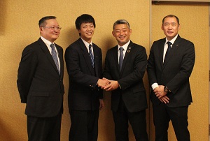 石川ミリオンスターズの端保代表取締役は「NPBに行くことができれば地元の子どもたちに希望を与える。地域の期待も背負って頑張ってほしい」とあいさつし、それに対して川﨑選手は「打撃はフルスイングが持ち味。走塁にも自信があり、1つでも先の塁を狙っていきたい。合同自主トレーニングに向けて体を作り、技術も磨いて、開幕から全試合に出場できるような選手になりたい。将来的にはNPBを目指したい」と抱負を述べました。