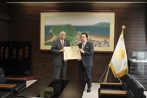 12月17日、文部科学大臣から令和元年度の「学校保健及び学校安全表彰」を受けた本校の学校歯科医・角秀人先生が輪島市役所を訪問し、梶市長に表彰を受けたことを報告しました。