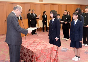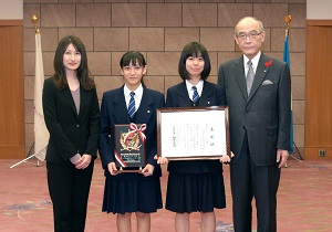 11月19日に代表者2名が県庁で谷本県知事から直接表彰を受けました。