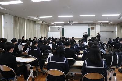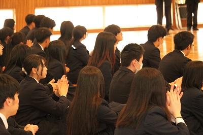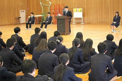 2年生も自分たちの進むべき道をどのように過ごしていけばいいかの参考として真剣に聞いていました。