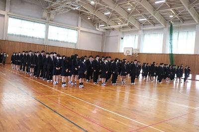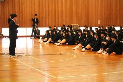 平野校長先生から新任される先生方の紹介があり、今年度初めて全校生徒が集まりました。