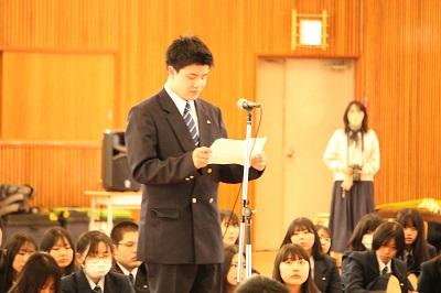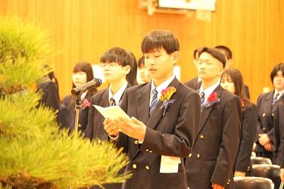 新入生代表の干場 泰志さんが、新入生宣誓で力強く宣誓しました。