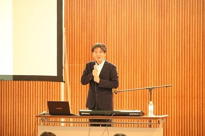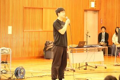 合唱のお披露目がありました。このお披露目では、野球部と吹奏楽部の他に金沢大学のアカペラサークル「Melo Melo」の方二人が加わり、合唱作曲家の弓削田 健介(ゆげた けんすけ)様に復活と再生の歌【フェニックス】を披露して頂きました。この曲は、能登と長岡で生まれた復興ソングです。能登と長岡の児童生徒が復興のメッセージを込めた曲です。