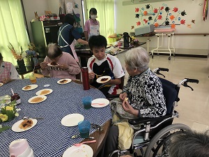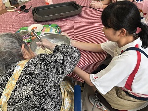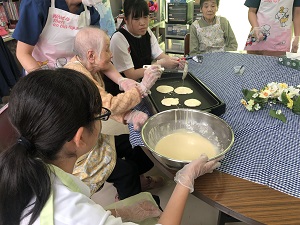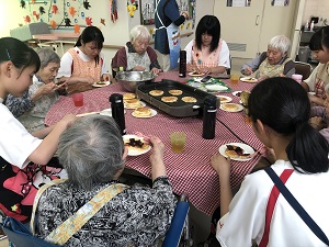 JRC部が介護老人保健施設 百寿苑で、高齢者とホットケーキを作るボランティアを行いました。