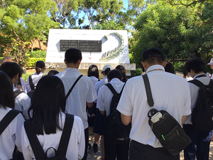 今日は午前中、ひめゆりの塔の見学と、戦争体験講話を聴きました。
