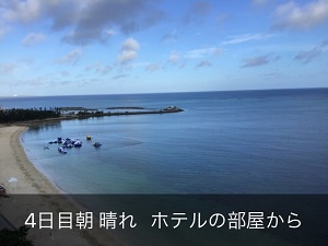 天気は晴れ!綺麗な青空と海が広がっています。
