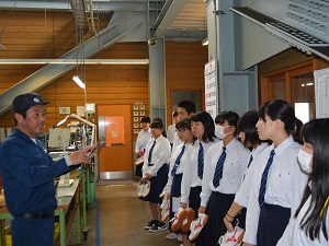 1年生の普通科は市内の2か所、総合学科はジョブカフェと市内の2か所で企業見学を行いました。