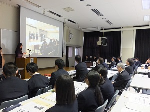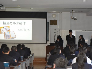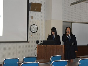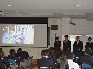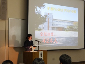 総合学科の3年生が1年間行ってきた活動の成果を、総合学科1、2年生の前で発表しました。