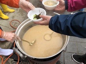 総合学科2年生3名と1年生3名が、輪島朝市感謝祭にてふぐ汁のふるまいボランティアを行いました。