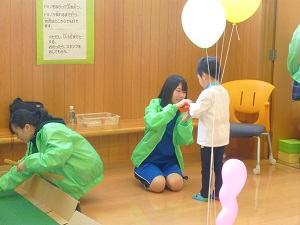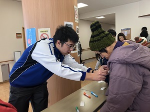 輪島市ふれあい健康センターで行われた「おしごと体験」にて、JRC部が運営のボランティアを行いました。