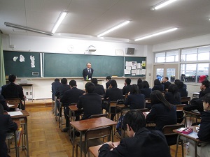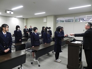 冬季休業中に1年生60時間、2年生80時間以上の学習時間達成者の表彰式を行いました。