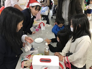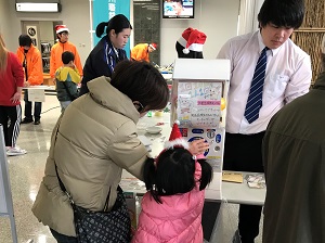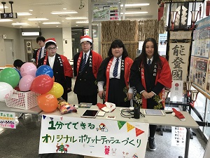 のと里山空港のクリスマスイベントにて、オリジナルガチャガチャの販売や、スイーツの販売のお手伝い、革細工コーナーのお手伝いなどを行いました。