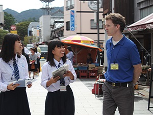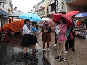 シンガポールのテマセクポリテクニック(専門学校)生が輪島市に訪れ、英語部が輪島朝市の観光案内を行いました。