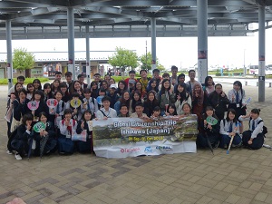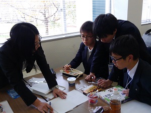 岩手県立盛岡商業高等学校の生徒と名刺交換