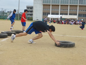 雨天により午後からは体育館での開催となりましたが、体育祭を行いました。