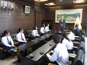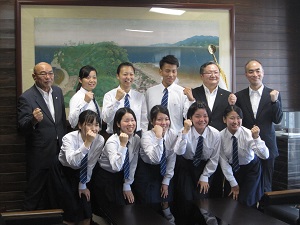 8人という少ない人数で、石川県初となる優秀校に選ばれ、東京公演の出演が決まった快挙に、梶市長からは驚きの声とともに熱い激励の言葉をいただきました。和太鼓部部長はチームの心が一つになって、モットーに掲げていた“明るく元気に”が実現できた、東京公演でも多くの方々に楽しんでいただきたいと話していました。