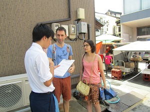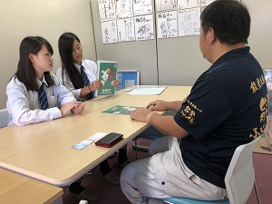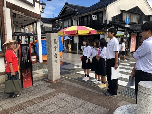 総合学科1~3年生7名が、県の国際感覚育成事業で観光案内の「あかり人」さんより観光案内をしていただき、ガイド方法などを学びました。
