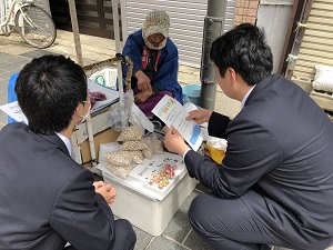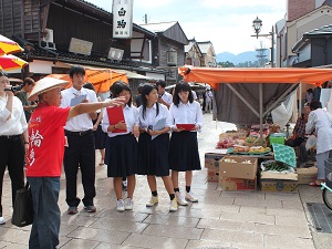 11月3日に行われる地域探究学習「ポスターセッション」のため、英語班が輪島朝市でインタビューを行いました。