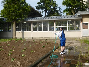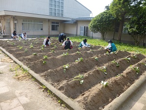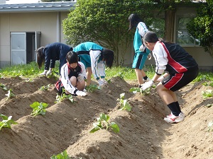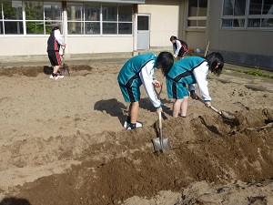JRC部が今年もさつまいも作りに挑戦し、畝を作りを行いました。