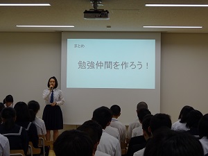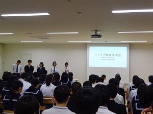 輪島市立輪島中学校にて、本校3年生5名がキャリア教育講演会を行ってきました。