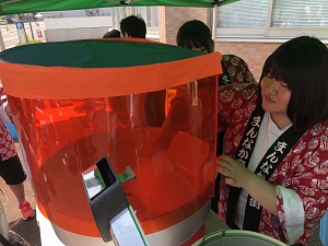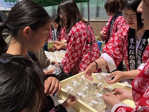 総合学科3年生7名が、「釜屋谷塚田線を祝う会」にて、振る舞いや販売のボランティアを行いました。