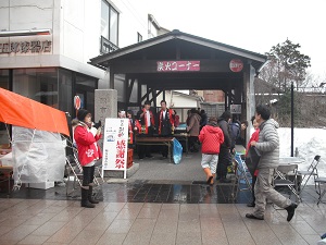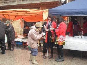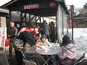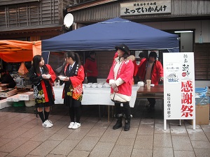 輪島朝市感謝祭にて、1年生6名と2年生2名がふるまい鍋の配布ボランティアを行いました。