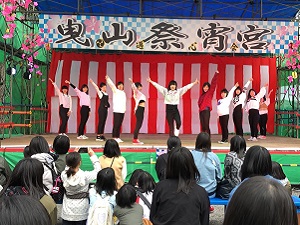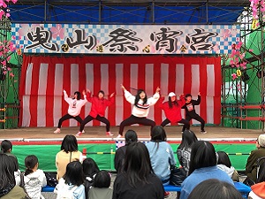 輪島市河井町の重蔵神社で行われた曳山祭宵宮ステージに、ダンス部が出演させていただきました。
