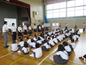 大屋小学校にて5・6年生を対象に、本校2年生7名が挨拶指導を行いました。