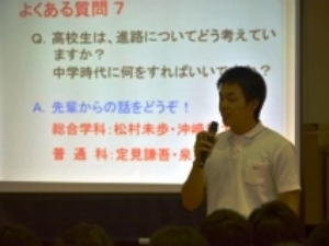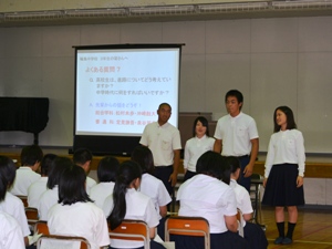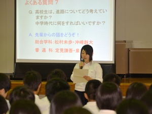 3年生4名が、輪島中学校で中学3年生の生徒を対象に、進路に関するアドバイスをしました。