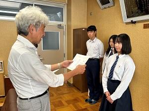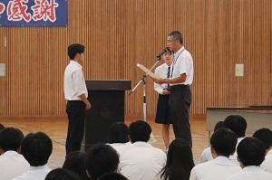 各学年ごとに設定した家庭学習時間を目標達成できた生徒には表彰状が贈られました