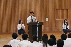 後期生徒会役員選挙が行われ、立候補者が意気込みを全校生徒の前で演説しました。